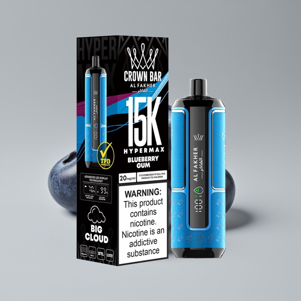Al Fakher Crown Bar 15K Hypermax علبة تبخير إلكتروني 22مل / 6000 نفخة / علكة توت أزرق