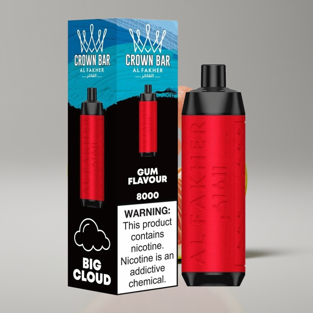 Al Fakher Crown Bar 8000 Crystal سيجارة إلكترونية للاستخدام مرة واحدة بنكهة العلكة - 600mah بطارية، 18ml سعة، 8000 نفخة