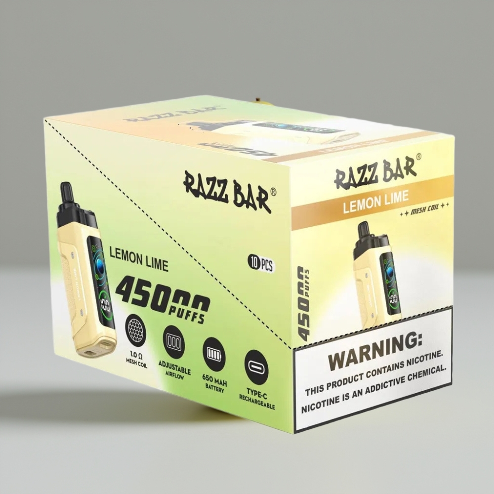 Razz Bar 45000 نفخة فيب صالح للشحن بنكهة الليمون واللايم - 650 مللي أمبير، 20 مجم/مل نيكوتين، ملف شبكي 1.0 أوم