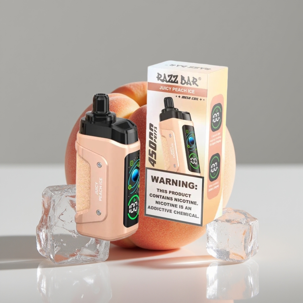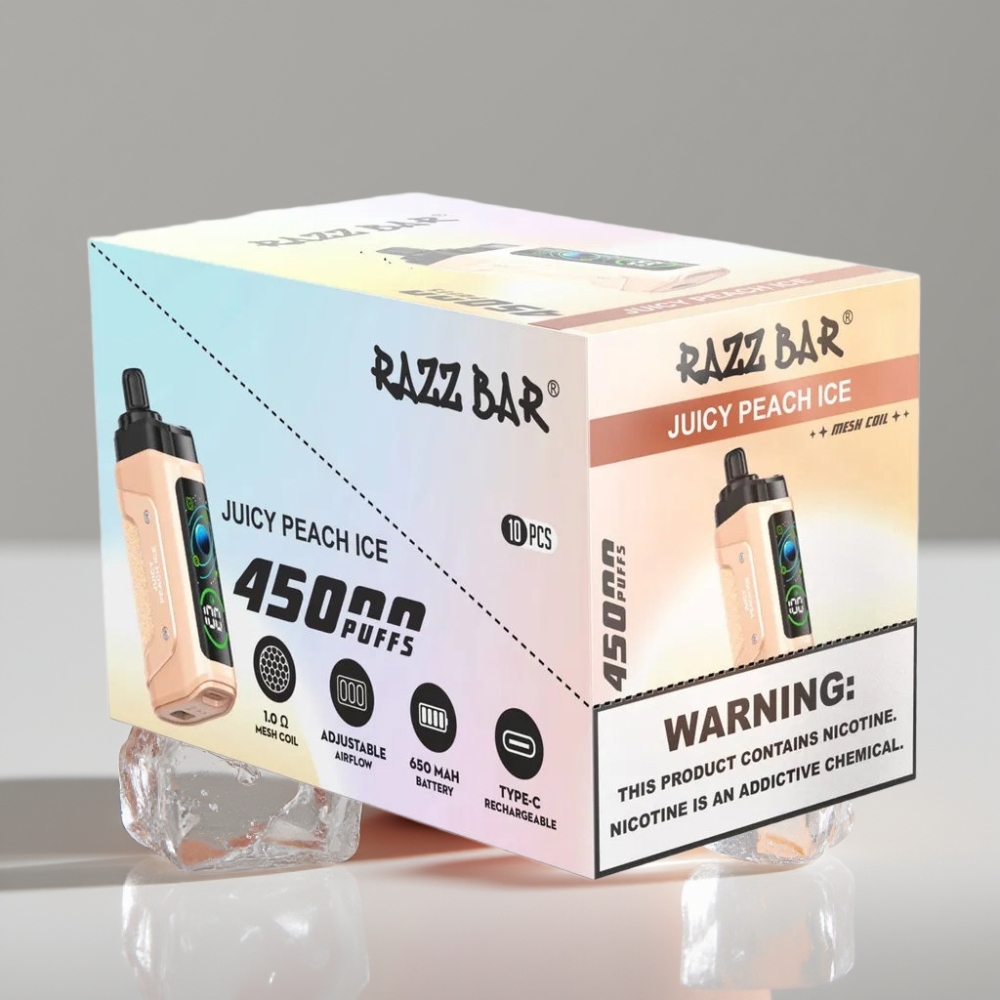 Razz Bar 45000 نفخة فيب قابل لإعادة الشحن بنكهة الخوخ المثلج مع ملف شبكي 1.0 أوم وبطارية 650 مللي أمبير